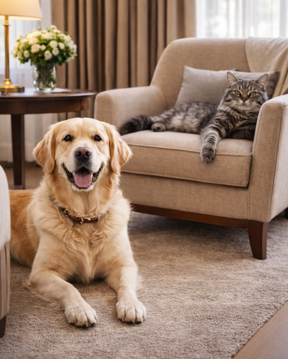 • Разрешено проживание с кошками и собаками декоративных пород
